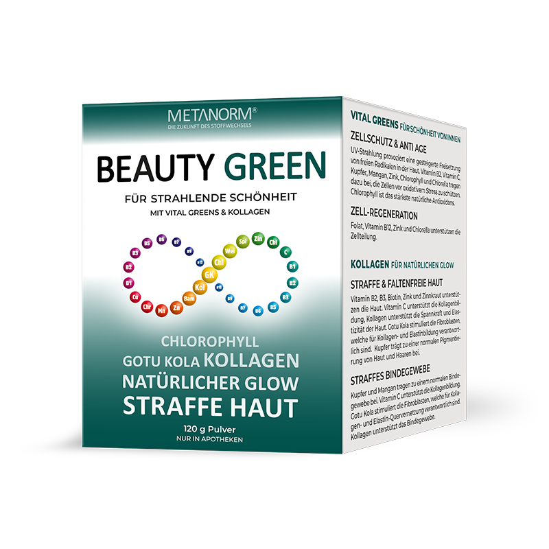 Folgende wertbestimmende Faktoren sind in einer Tagesdosis (TD) BEAUTY GREEN METANORM® enthalten: